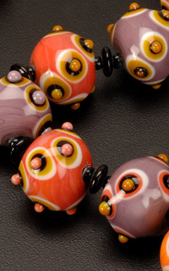 , 20” necklace with lampworked glass beads and seed beads. $950.00.