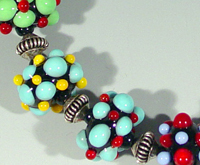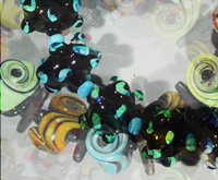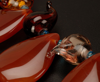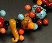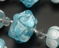- All necklaces are unique and contain handmade lampworked beads created by Fiona Dejardin, which are combined with either semi-precious stones, pearls, or silver and seed beads.